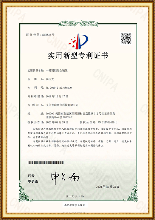 實用新型專利證書(一種甲醛清除劑的原料混合